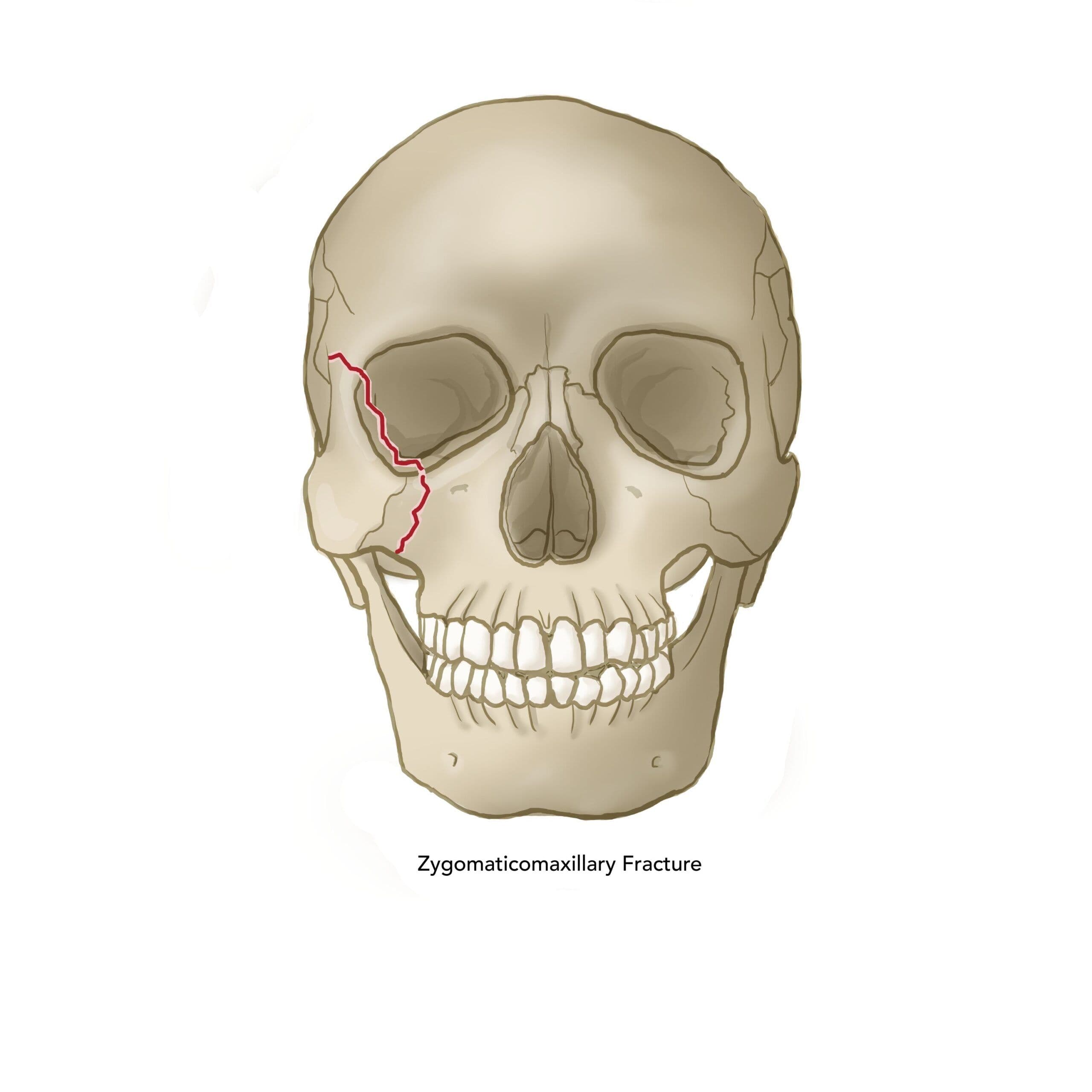 The zygomatic bone articulates with the sphenoid, maxillary, temporal, and frontal bones. ZMC fractures can be challenging as appropriate reduction at one suture line does not ensure correct reduction at the others. Patients may present with periorbital ecchymosis and edema, subconjunctival hemorrhage, flattening of the malar eminence or zygomatic arch, trismus, anesthesia in the cranial nerve (CN) V2 distribution, diplopia, and/or enophthalmos.6–8