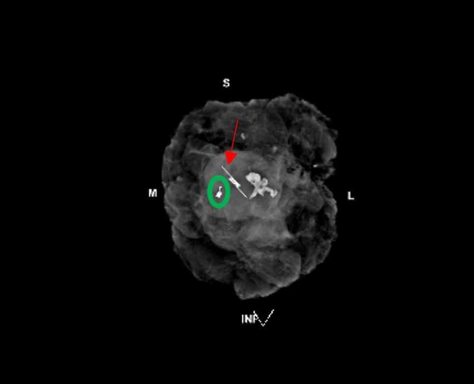 While there are several different wireless seed products in use, the technique is the same regardless of product used. A wireless seed is placed within or near the lesion and then the seed and lesion are surgically excised under the guidance of an intraoperative handheld seed-specific probe (Figure 1). This technique is a safe and feasible option for localization.