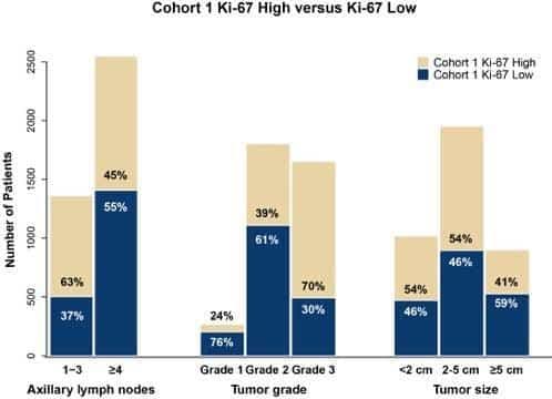 These patients were particularly enriched in the Ki-67-low cohort, as detailed in the figure below, with 55% of all patients with ≥4 lymph nodes involved in monarchE being Ki-67-low.