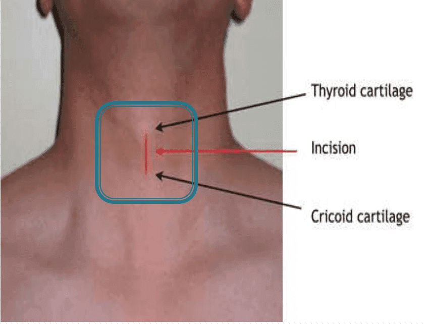 - Perform transverse incision with scalpel in cricothyroid membrane