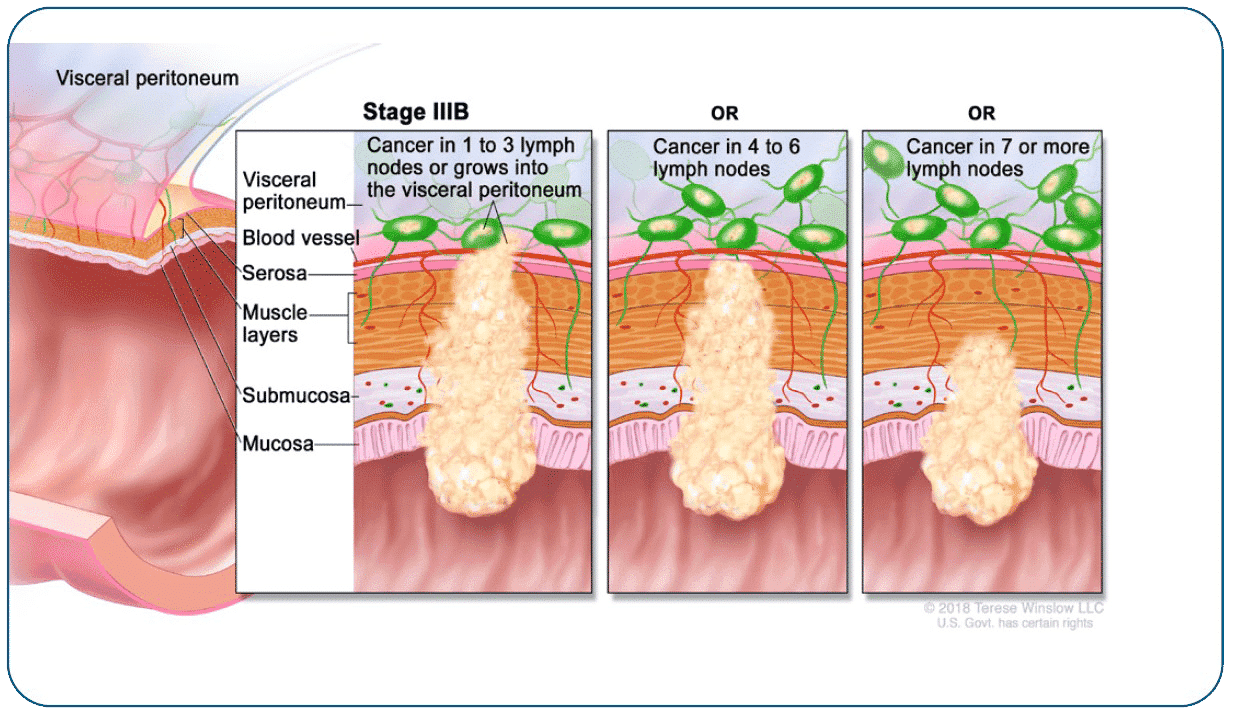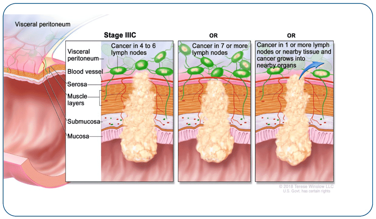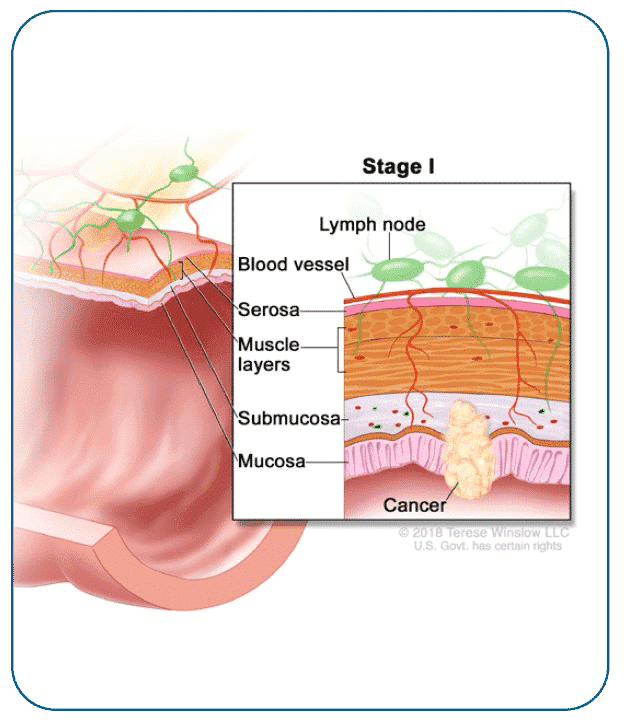The cancer stage describes the extent of cancer in the body. It is used to plan which tests may be needed and which treatments are best for you. Having a general idea of the structure of the colon wall is helpful for understanding how colon cancer is staged.