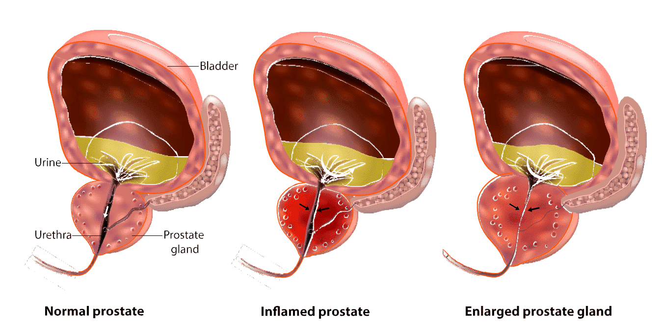 In many individuals, the prostate grows large enough to squeeze the urethra — a tube that passes through the prostate. The urethra allows urine to flow out of the bladder. This squeezing can narrow the urethra, which slows down or stops the flow of urine when you try to pee.