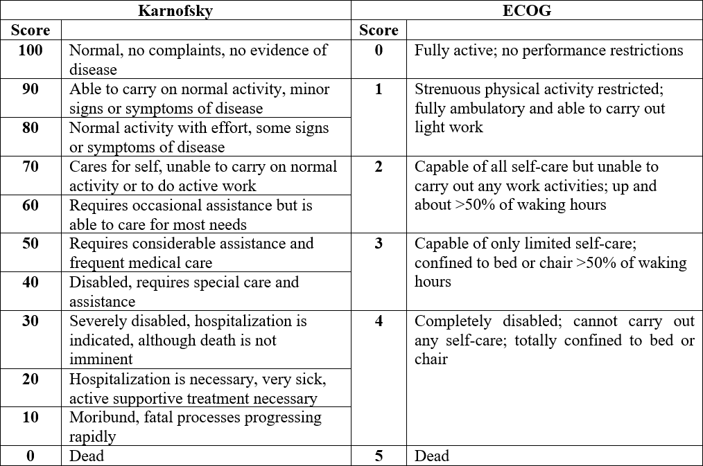 Table 4. Karnofsky and Eastern Cooperative Oncology Group performance status measures
