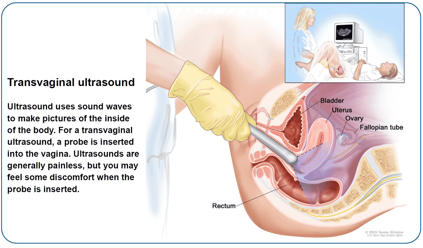 For a transvaginal ultrasound, your doctor will insert the probe into your vagina. This may help the doctor see your ovaries more clearly. Ultrasounds are generally painless, but you may feel some discomfort when the probe is inserted.