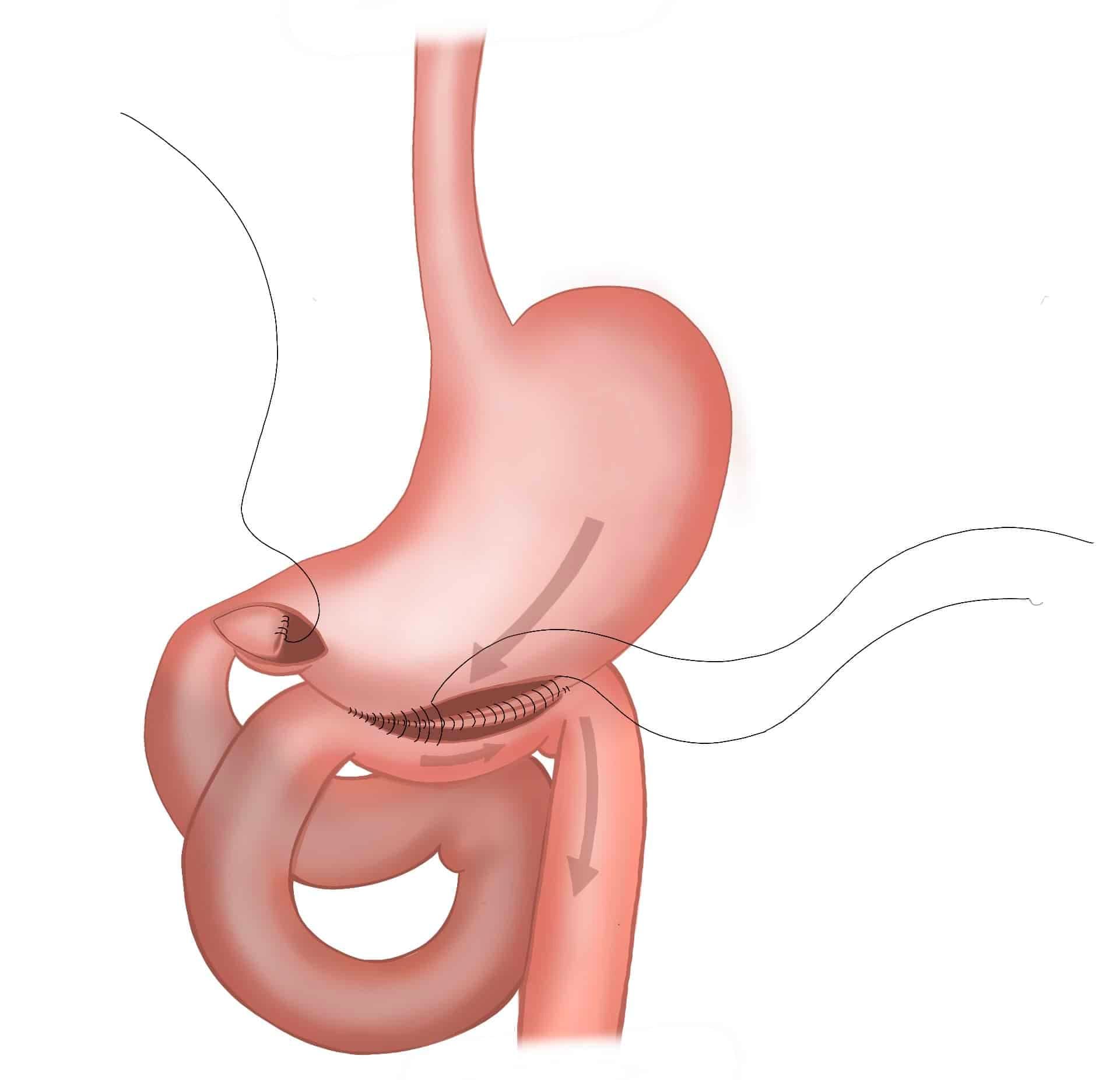 side-to-side jejunojejunostomy can be handsewn or stapled - Roux limb should be fixated in window in right side of transverse mesocolon