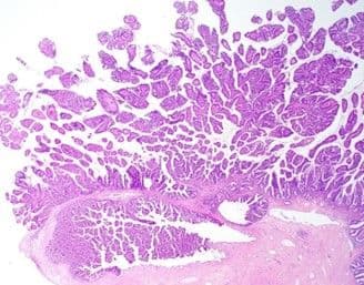 Papillary squamous cell carcinoma appears as an exophytic papillary tumor with fibrovascular cores lined by squamous cells. While the architecture may appear vaguely condylomatous, papillary squamous cell carcinoma shows full-thickness high-grade atypia, without significant koilocytic changes [79]. Immunohistochemistry is typically negative for cytokeratin 20 and positive for cytokeratin 7, p63, and p16 [79, 80].