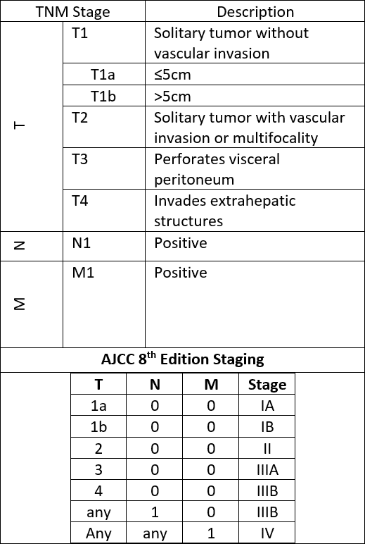 Table: 8th Edition AJCC Staging for Intrahepatic Cholangiocarcinoma