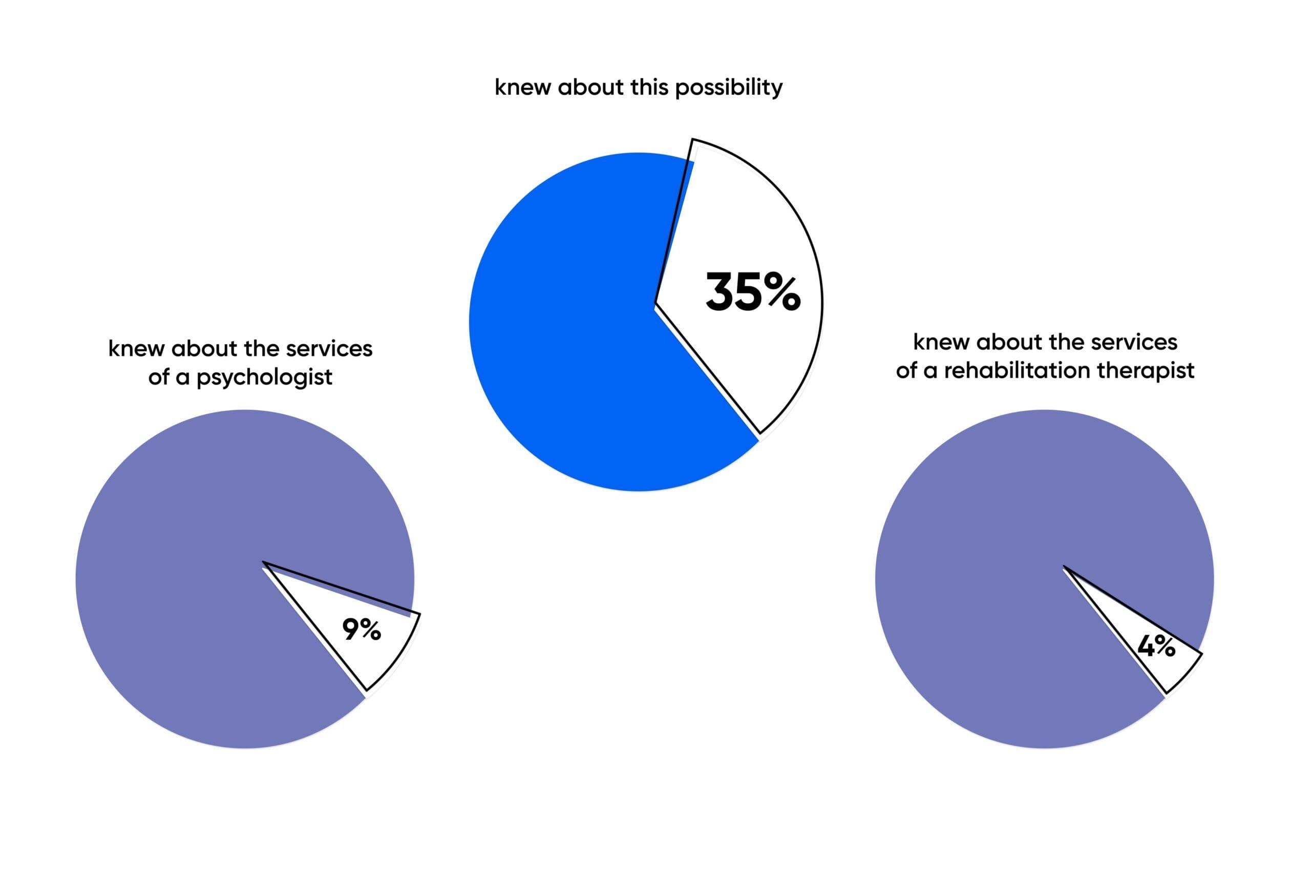 Awareness of possible additional services of a rehabilitation therapist or psychologist is rather low, only 35% knew about this possibility in general and 9% said that there were services of a psychologist, and 4% said that there were services of a rehabilitation therapist.