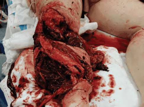 - Кістки чи переломи, які видніються з ран