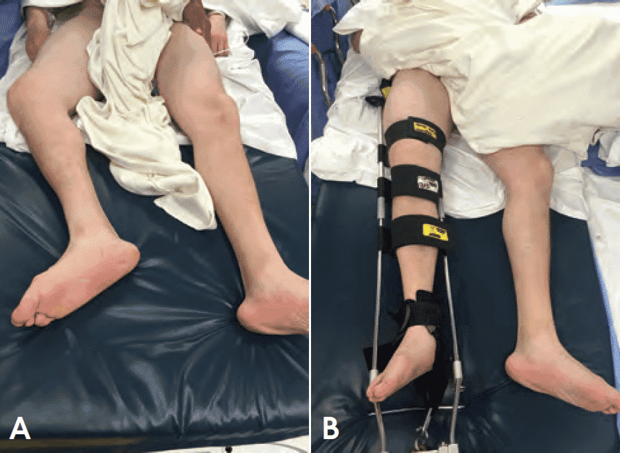 Застосування комерційно доступних фіксаторів колінного суглоба чи задньої довгої гіпсової шини допомагає підтримувати комфорт і стабільність. Ногу треба фіксувати не повністю розігнутою, а так, щоб залишалося принаймні 10° для її згинання з метою зменшення тиску на нервово-судинні структури.