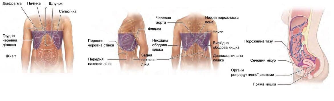 - Визначати анатомічні області живота, що мають критичне значення в оцінці і веденні травмованого пацієнта.