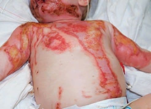 Опіки на підошвах ніг дитини зазвичай свідчать про те, що дитину помістили в гарячу воду, а не про те, що на неї потрапила гаряча вода, оскільки в останньому випадку контакт з холодною ванною може захистити нижню частину стопи.