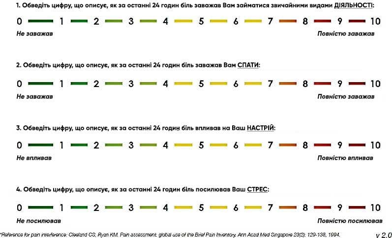 Активний контроль болю, тривоги і делірію, що включає профілактику, оцінку і лікування, є медичним і моральним імперативом починаючи від місця отримання поранення (надання допомоги пораненим в умовах бойових дій) і на всіх подальших рівнях медичних закладів. Враховуючи істотний тягар травми у пацієнтів із бойовими пораненнями, пріоритетні хірургічні втручання та заходи із порятунку життя можуть визначатися як першочергові, применшувати важливість оцінки й активного лікування болю, тривоги й делірію або вступати в суперечність з таким лікуванням. Усвідомлюючи, що обґрунтована клінічна оцінка, логістичні та кадрові обмеження, а також оперативне середовище можуть вимагати застосування інших методів, слід розробити відповідні настанови.