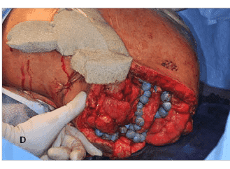 - Місцеві антибактеріальні та протигрибкові кульки можуть розглядатися у випадках підтвердженої або підозрюваної ІГРІ з високим ступенем імовірності і можуть використовуватися в поєднанні з вакуумними / інстиляційними пов’язками. Кульки мають містити ліпосомальний амфотерицин В — 500 мг, вориконазол — 200 мг, тобраміцин — 1,2 г та ванкоміцин — 1 г.