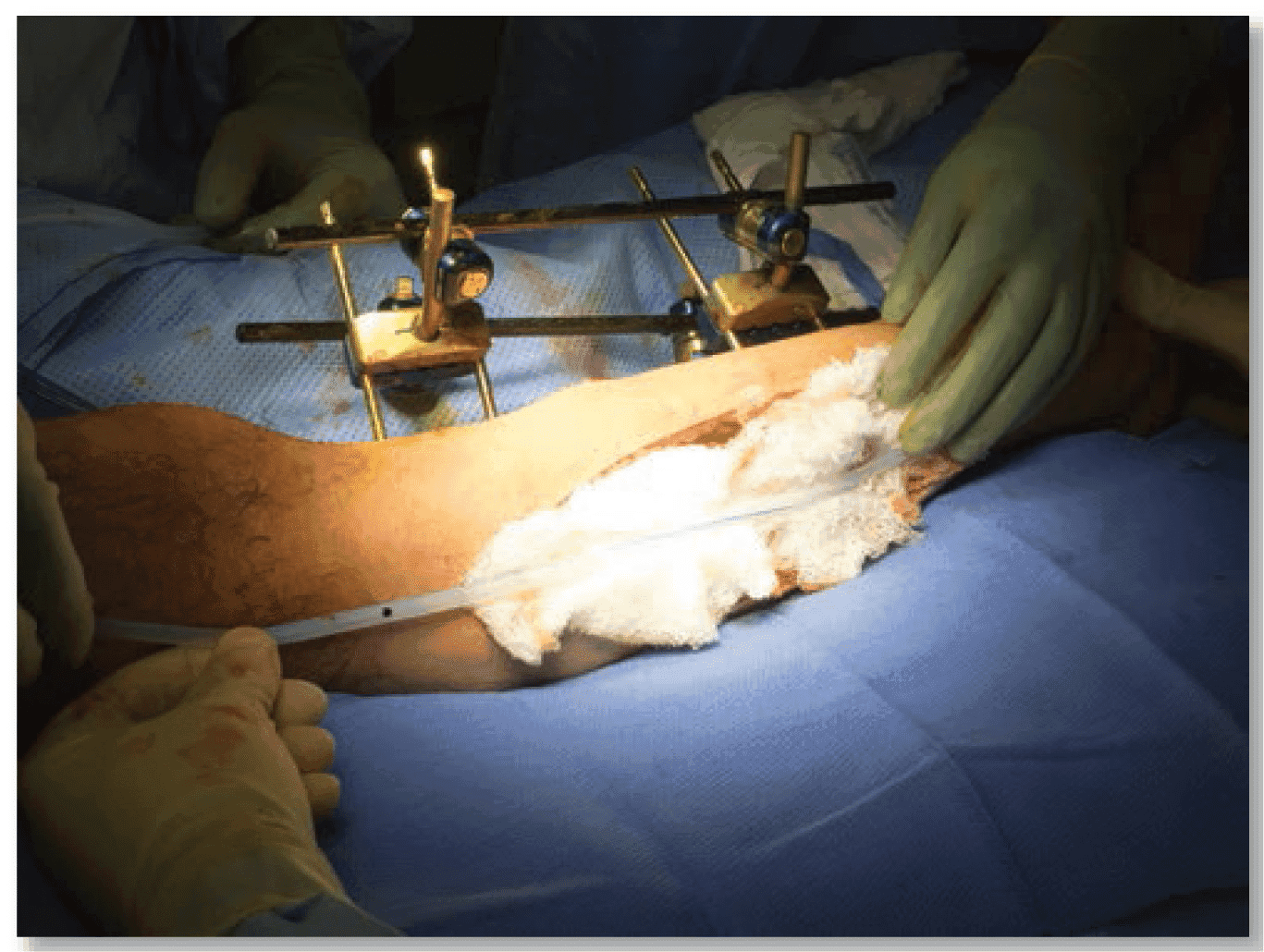 - Після висічення постарайтеся забезпечити, щоб життєво важливі структури (тобто кровоносні судини, нерви, сухожилля, кістка) були покриті м’якою тканиною. Це може вимагати часткового закриття рани або мобілізації м’яких тканин для покриття структури.
