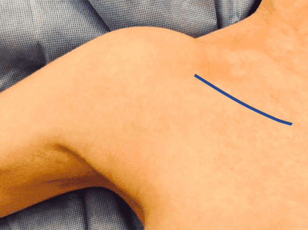 Плечова артерія: через поверхневе розташування артерія легко травмується, особливо при переломі або вивиху плечової кістки. Більшість поранень є вторинними через проникаючу травму з тупим пораненням, часто у зв`язку з вивихом плечової кістки. [6] Розмістіть пацієнта лежачи на спині, руку на підставці відведіть під кутом 90°. Уникайте перерозтягнення плечового сплетення.