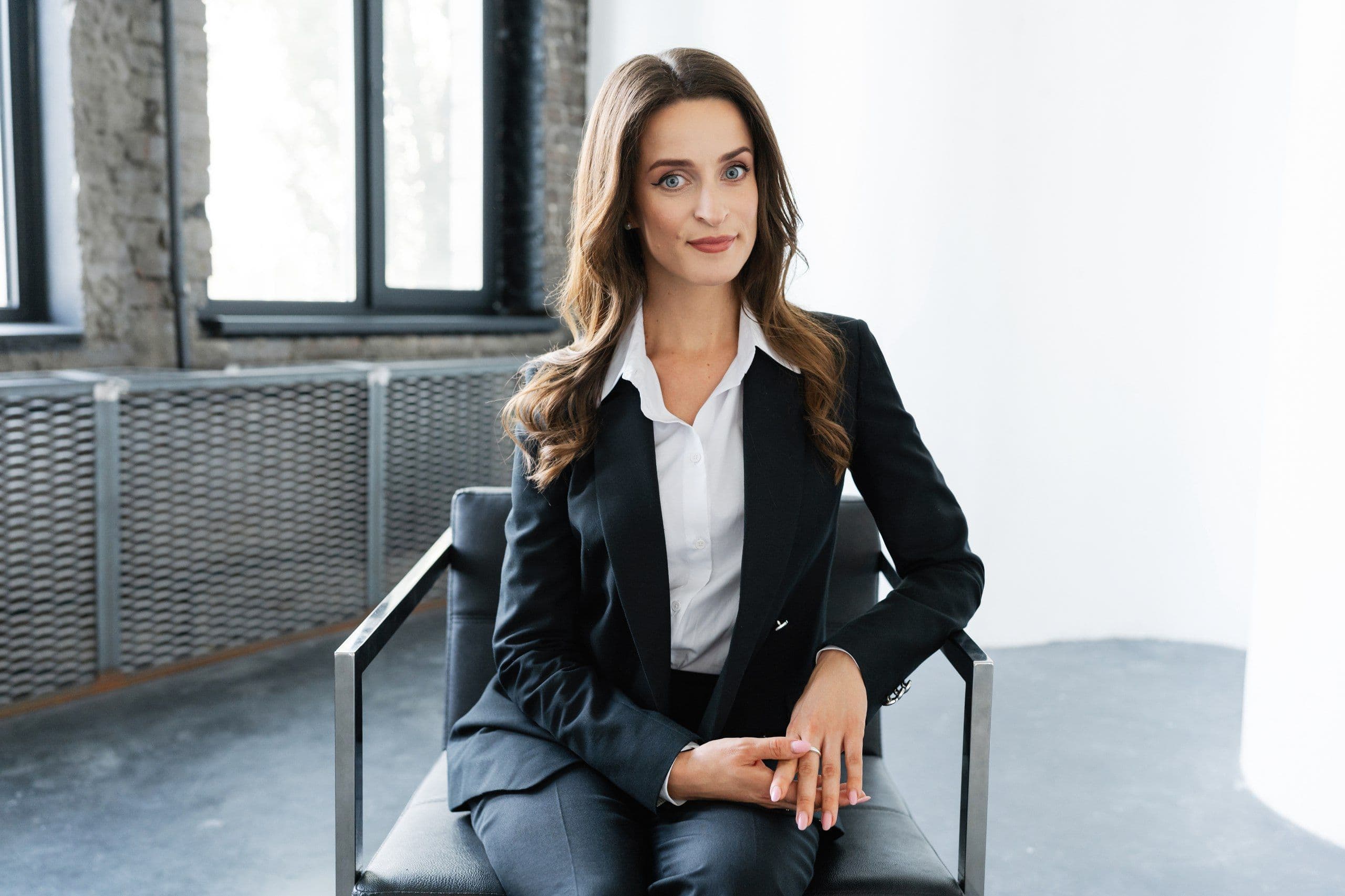- Пряма спина, підняте підборіддя й погляд, спрямований на аудиторію, демонструють впевненість.