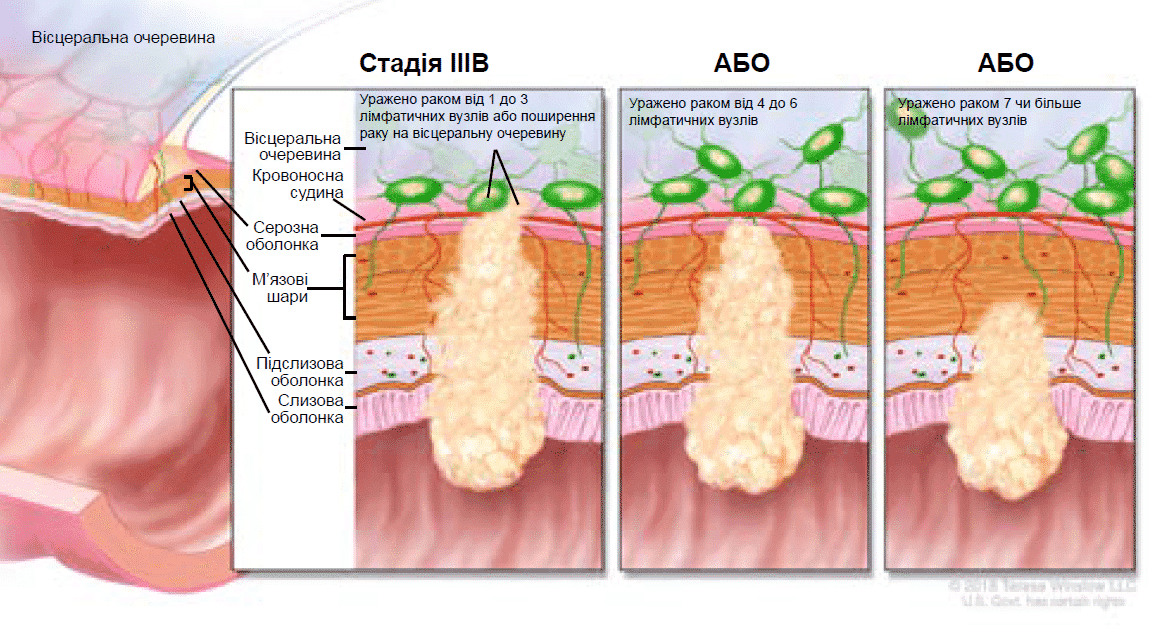 Стадія раку — це оцінка масштабів поширення раку в організмі. Визначення стадії використовується для планування того, які обстеження можуть знадобитися та які методи лікування є якнайкращими саме для вас. Мати загальне уявлення про структуру стінки товстої кишки корисно для розуміння стадії раку товстої кишки.