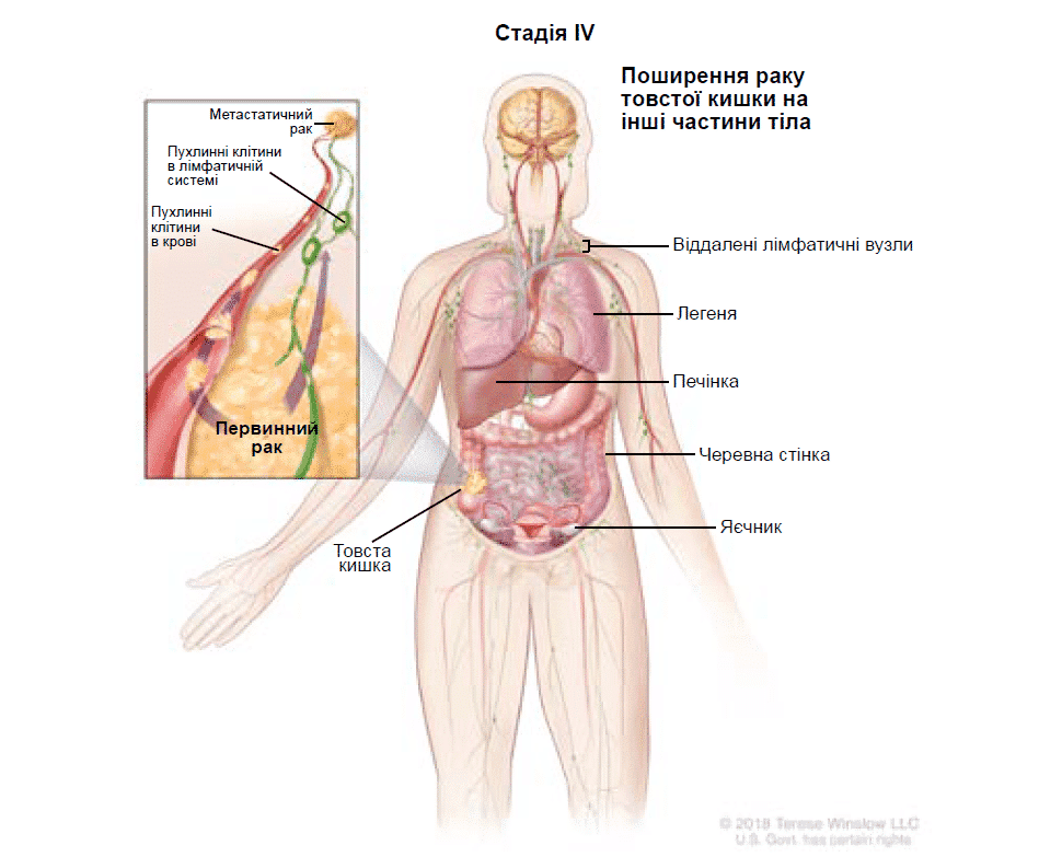 - Якщо не лікувати, рак проростає через стінку товстої кишки всередину черевної порожнини.