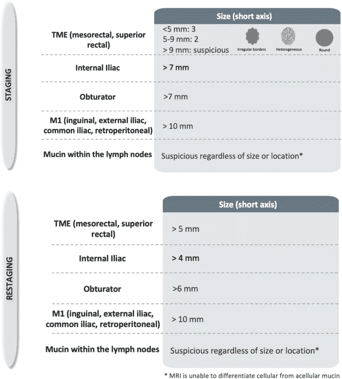 - Критерії для початкової оцінки лімфатичних вузлів та рестадіювання після неоадʼювантного лікування