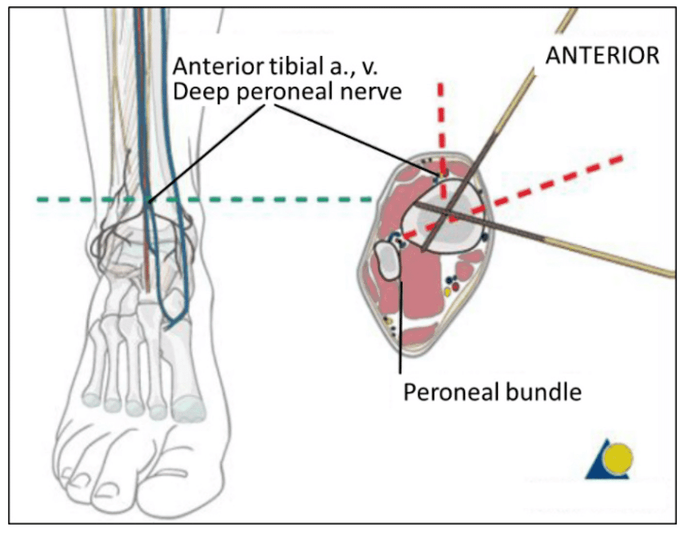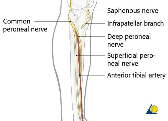 Бічний вид великогомілкової кістки показує розташування нейроваскулярних структур, яких слід уникати під час встановлення стержня великогомілкової кістки. Структури розташовані постеролатерально, тому їх легко уникнути завдяки встановленню стержнів на антеромедіальній поверхні великогомілкової кістки.