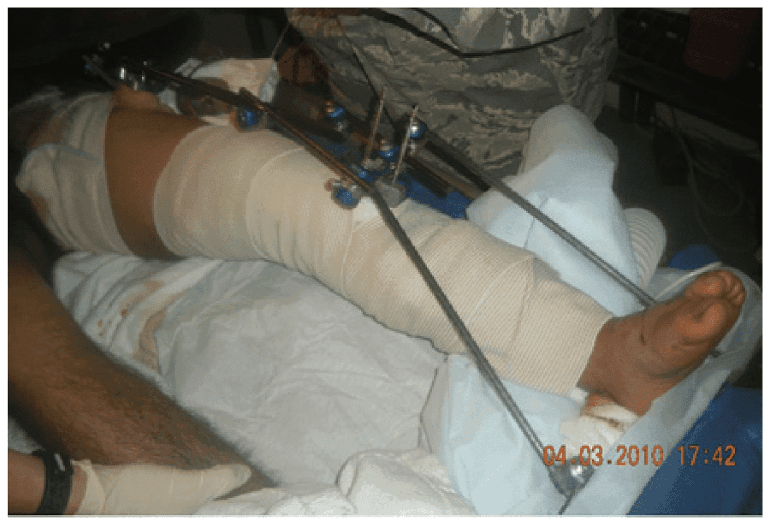 - Possley DR, Burns TC, Stinner DJ, et al. Temporary external fixation is safe in a combat environment. J Trauma. 2010;69:S135-S139. https://insights.ovid.com/crossref?an=00005373-201007001-00020 Accessed Feb 2020.