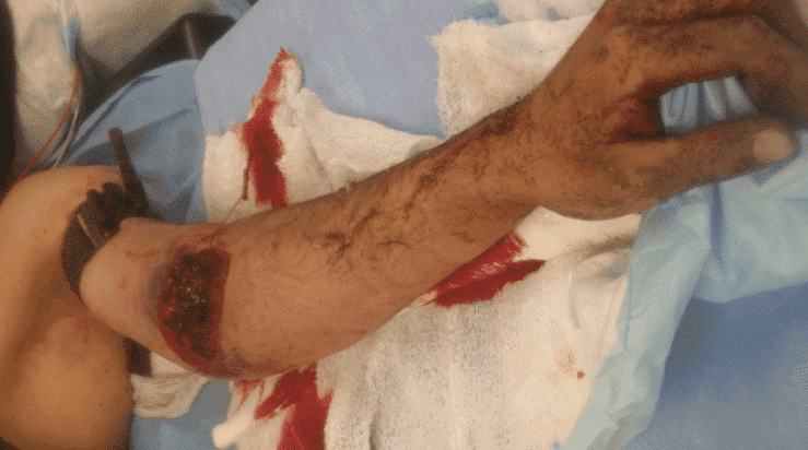 - Догоспітальна допомога при пораненнях кінцівок розглядається у настановах «Надання допомоги пораненим в умовах бойових дій» та «Гостре лікування травматичного поранення під час тривалого догляду в польових умовах», 24 липня 2017 р. Загалом, після того, як буде надано допомогу у зв’язку із травмами, що становлять загрозу для життя, при підозрі на перелом слід накласти шину, якщо це можливо. При відкритих ранах слід якомога швидше застосувати антибіотики; залежно від ситуації та здатності пацієнта ковтати ліки допускаються пероральні або внутрішньовенні антибіотики.