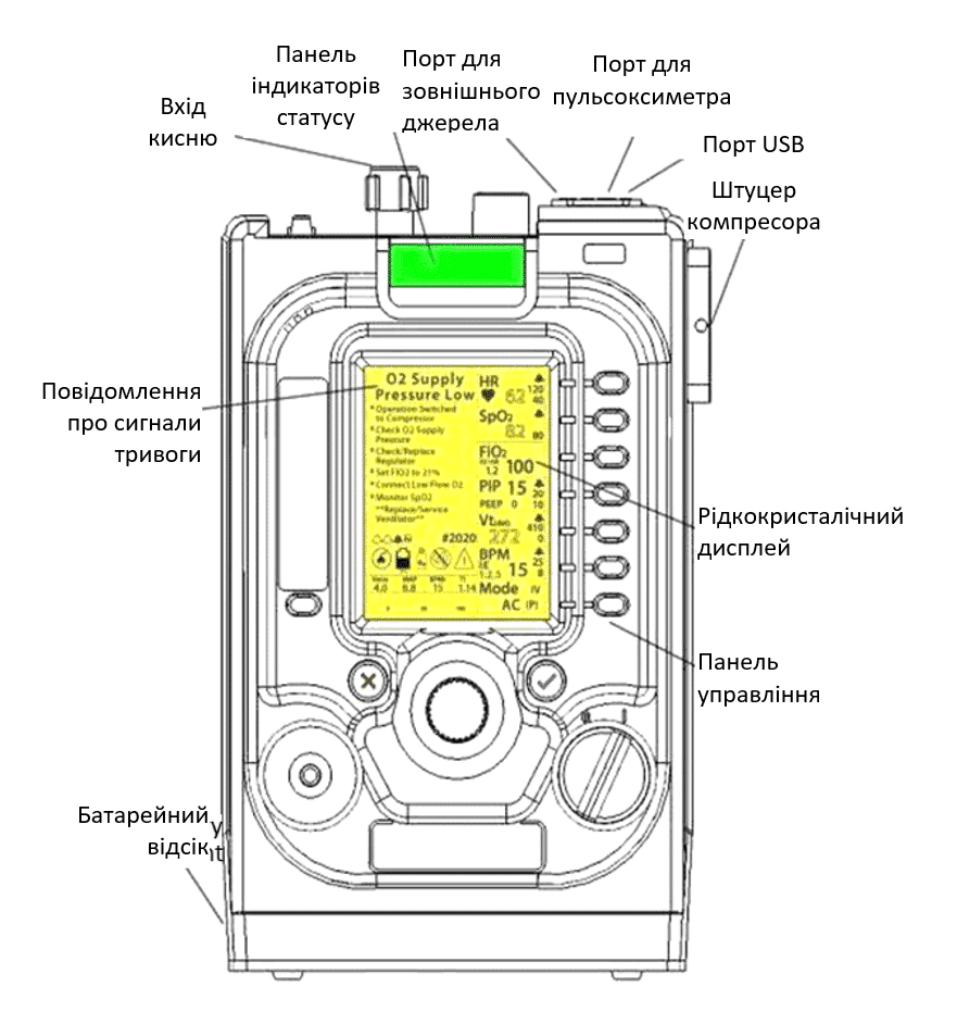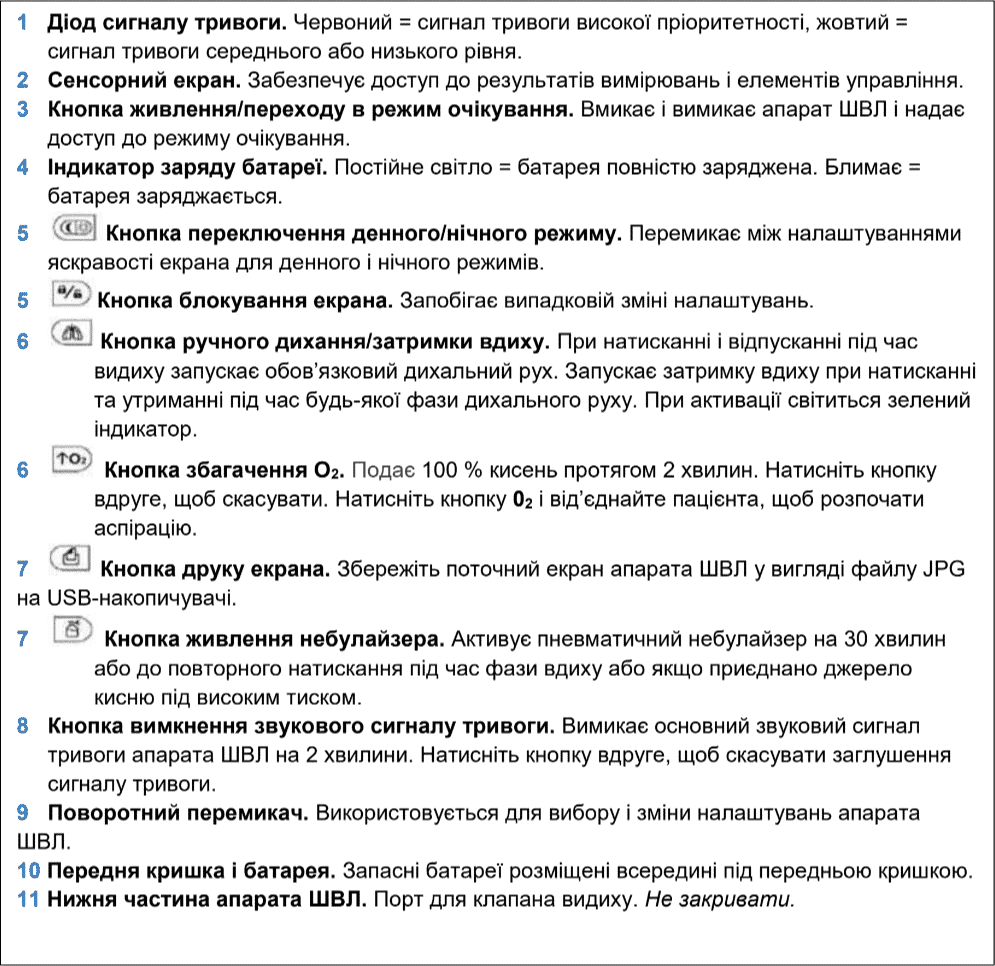 ПРИМІТКА. Цей пристрій призначений для короткочасного використання або застосування під час транспортування та не призначений для заміни інших доступних апаратів ШВЛ.