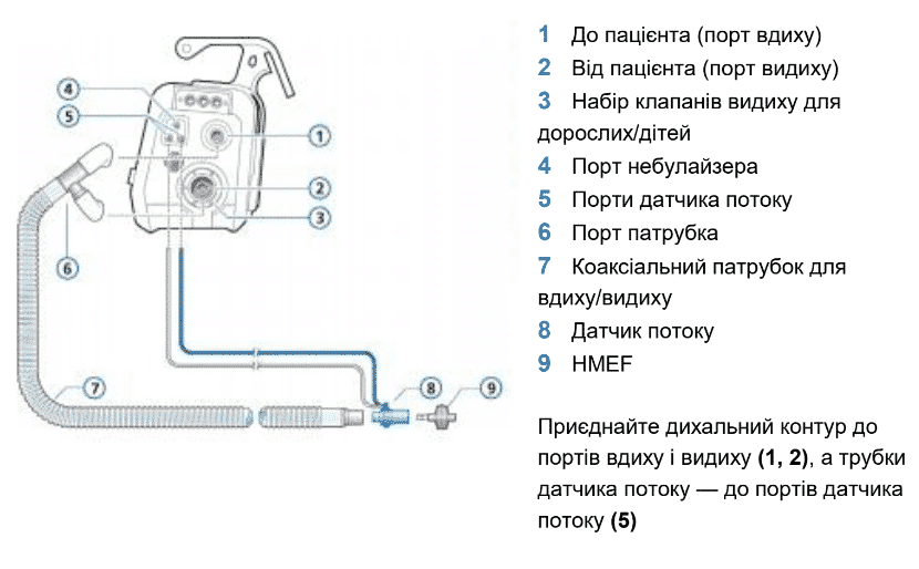 **Підключайте пацієнта до апарата ШВЛ тільки після проведення обох тестів.**
