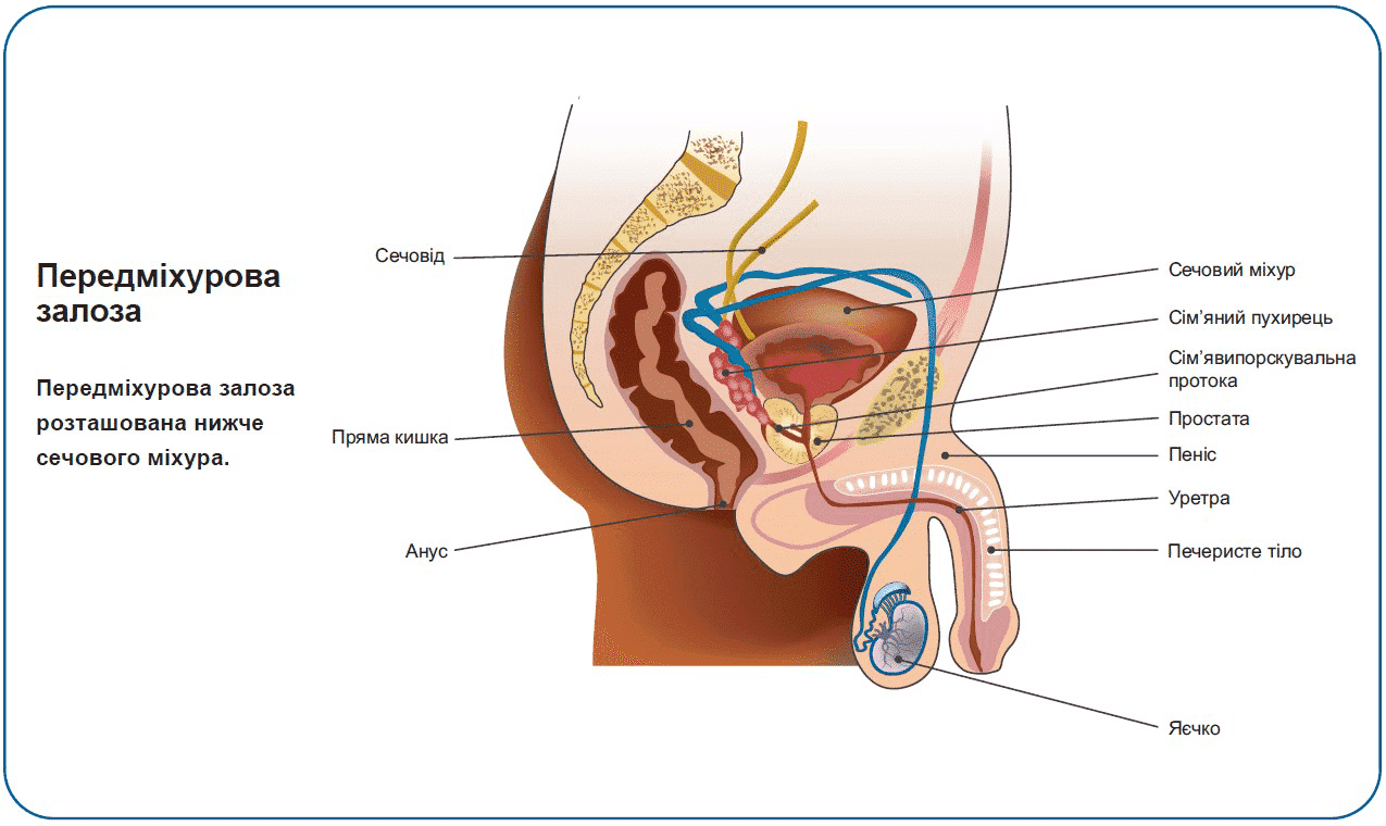 Залоза — це орган, який виробляє рідини або хімічні речовини, потрібні організму. Передміхурова залоза виробляє рідину білого кольору, яка є одним із компонентів сім’яної рідини. Сім’яна рідина складається зі сперми яєчок і рідини з передміхурової залози, а також з інших статевих залоз. Під час еякуляції сперма виділяється з організму через пеніс.