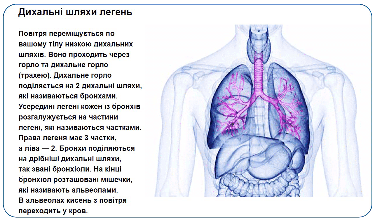 - Легені допомагають організму отримувати повітря, потрібне для життя.