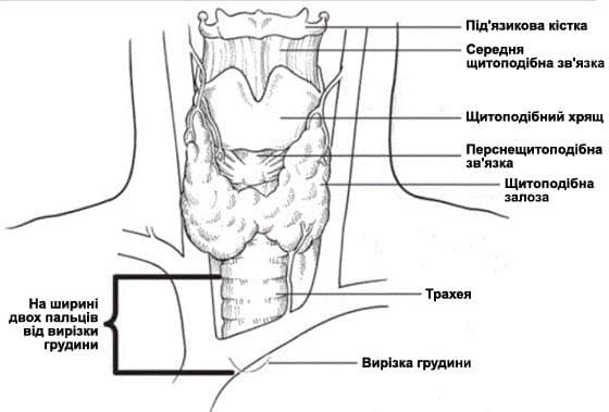- Пропальпуйте трахею на два пальця вище над вирізкою грудини (Зобр. 1*).