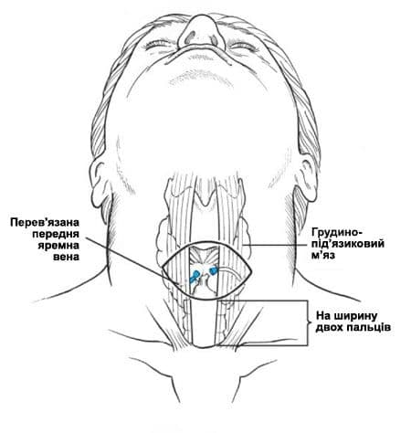 - Накладіть шов з кожного боку трахеї на рівні третього трахеального кільця.