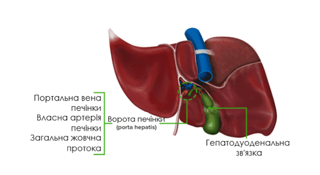 Короткий огляд анатомії важливий для будь-якого хірурга, який лікує травми печінки. Печінка є найбільшим органом в організмі і розташована у верхньому правому квадранті черевної порожнини, безпосередньо під діафрагмою. Серпоподібна зв’язка – це двошарова складка очеревини, яка з’єднує печінку з передньою черевною стінкою і візуально розділяє печінку на дві частини. Анатомічно печінка поділяється на праву та ліву частки печінки лінією Кантлі, що йде від жовчного міхура до НПВ (нижньої порожнистої вени).