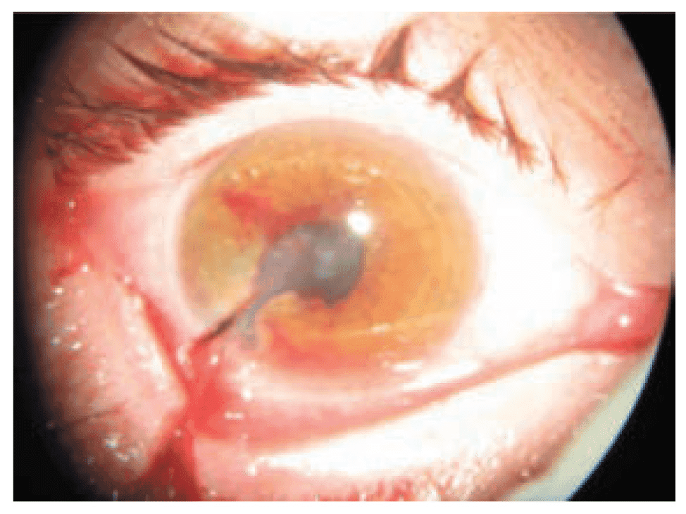 - 1 ступінь: заповнення кров’ю передньої камери менш, ніж на третину
