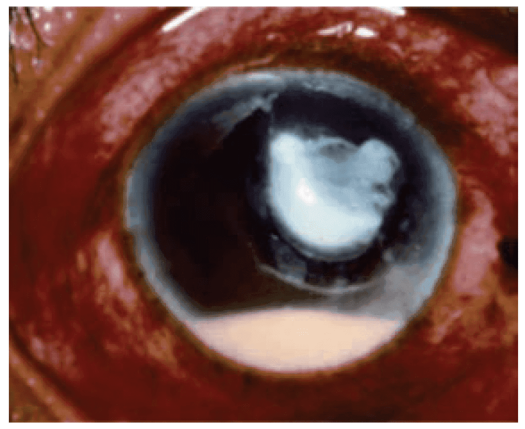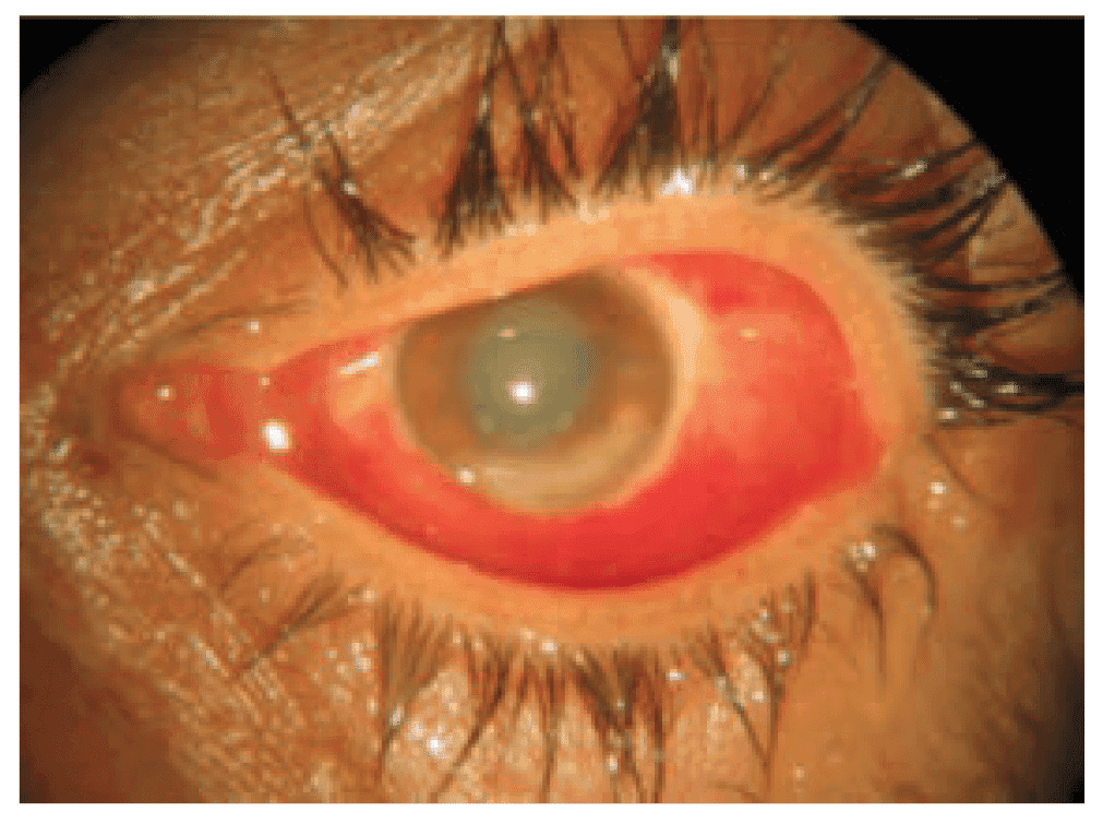 Гіфема може призвести до підвищення ВОТ та забарвлення рогівки кров’ю. Ступінь тяжкості даного стану оцінюється за кількістю крові в передній камері ока. Ризик підвищення ВОТ зростає зі збільшенням ступеня гіфеми (мал. 8).