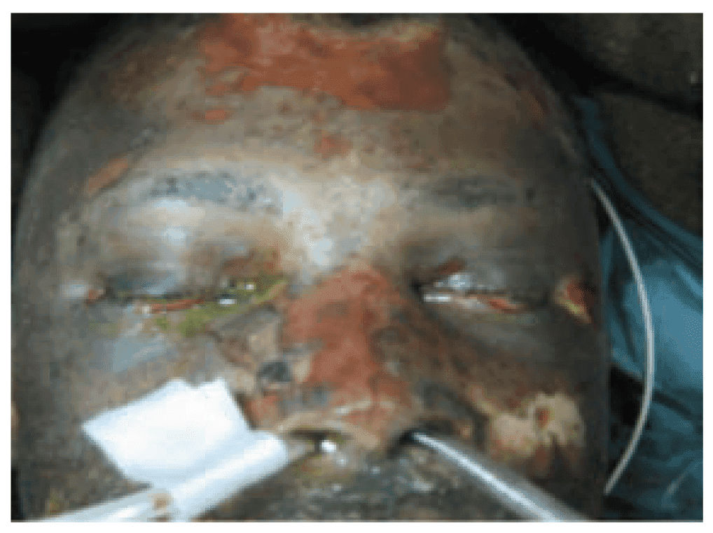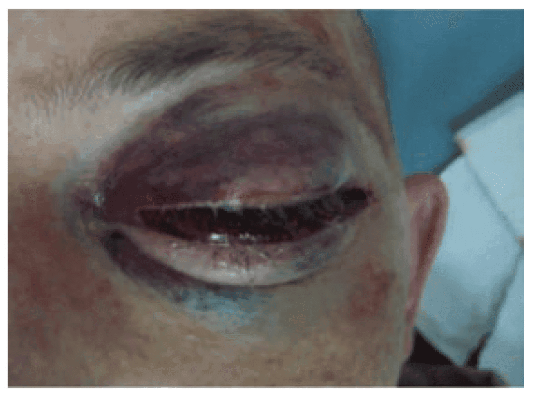 При термічній травмі обличчя часто бувають обпечені повіки, внаслідок чого вони можуть стягуватися (скорочуватися), не закриваючи око до кінця. Це підвищує ризик розвитку експозиційної (нейропаралітичної) кератопатії. До критичних моментів оцінки поранення ока належать механізм травми та наявність належним чином одягнених захисних окулярів під час її отримання.