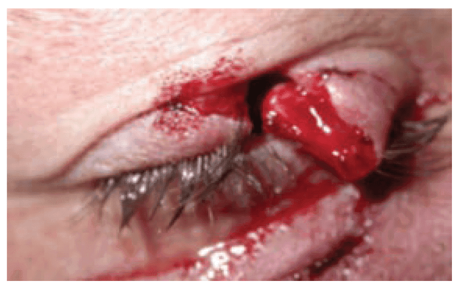 - Якомога швидше виконайте латеральну кантотомію/кантоліз, у межах 90 хв від моменту отримання травми (у випадку, коли евакуація до хірургічного відділення триватиме більше, ніж 60 хв).