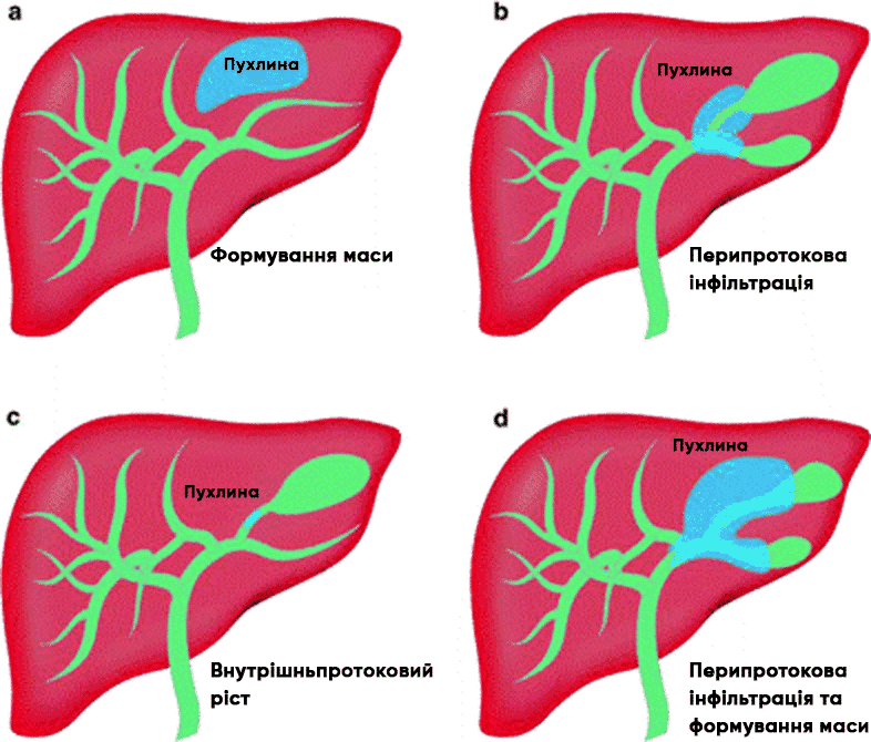 (Джерело: Brown KM, Geller DA. Surgical Management of Intra-Hepatic Cholangiocarcinoma. In: Biliary Tract and Gallbladder Cancer. Medical Radiology. Springer, Berlin, Heidelberg; 2014:241-252. doi:10.1007/978-3-642-40558-7_15)