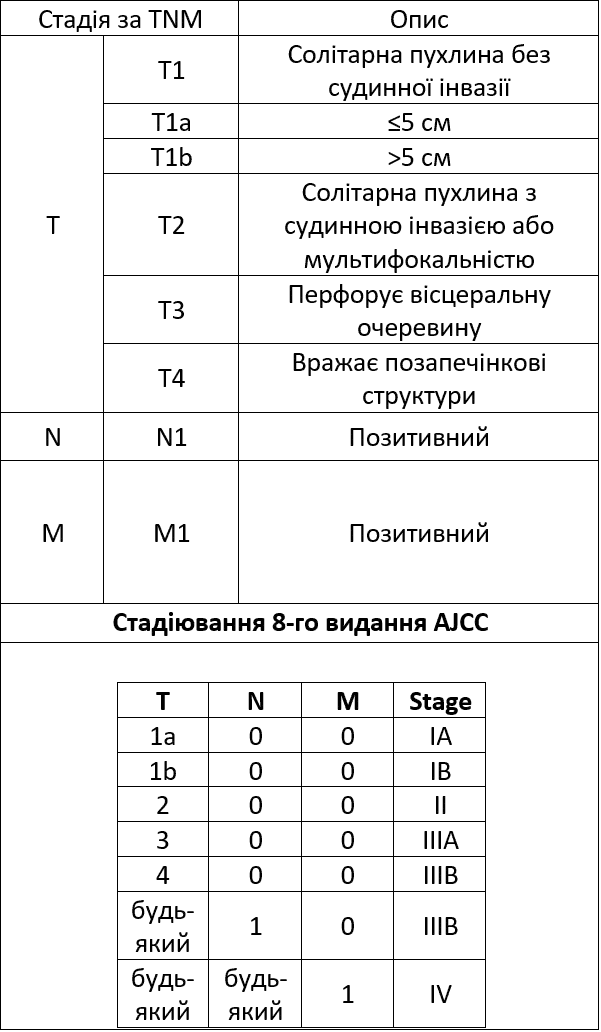 Таблиця: 8-е видання AJCC, Стадіювання внутрішньопечінкової холангіокарциноми.