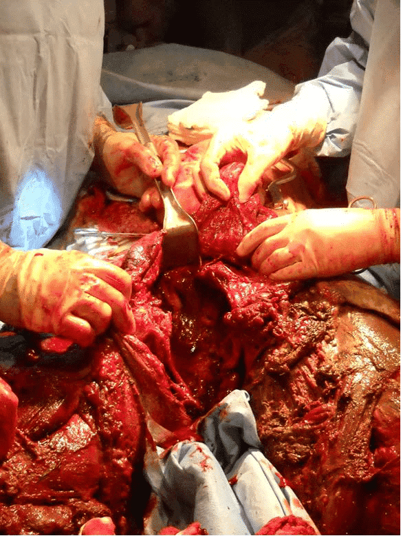 Первинна мета оперативного втручання — контроль кровотечі та запобігання зараженню. З огляду на характер цих поранень оптимальним підходом є одночасне залучення бригад загальної та ортопедичної хірургії, якщо є така можливість. Наприклад, два хірурги можуть забезпечити проксимальний контроль та працювати з ураженнями в черевній порожнині, поки друга бригада виконує ампутації. Третю бригаду можна залучити при наявності поранень верхніх кінцівок. Такий підхід дозволяє максимально підвищити ефективність та обмежити тривалість травматичних процедур у пацієнта з тяжкою травмою.