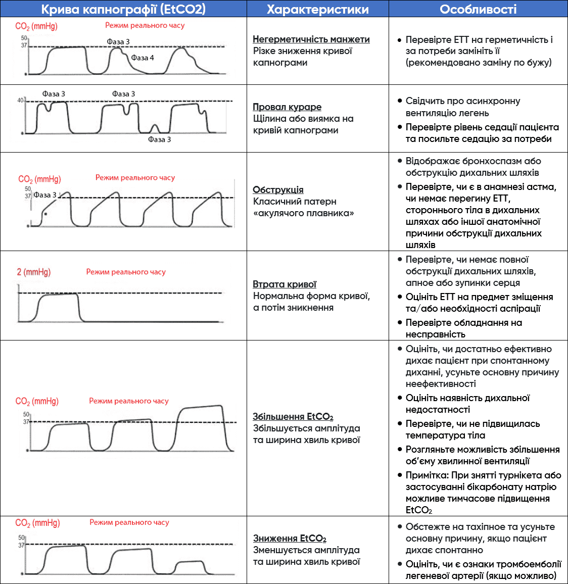 Монітор з опцією капнографії може надати набагато більше інформації про стан вентиляції та оксигенації пацієнта. Короткий огляд найпоширеніших кривих допоможе зрозуміти стан пацієнта.