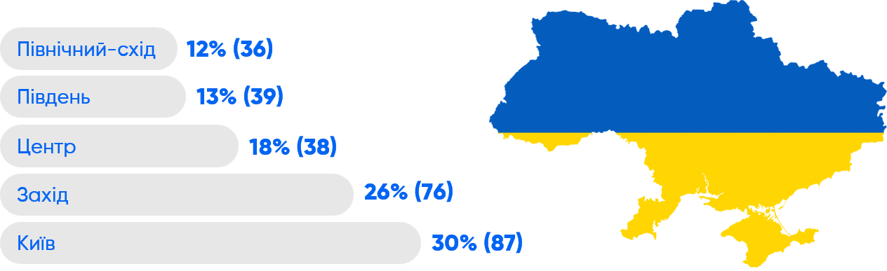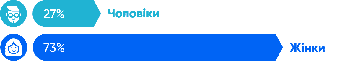 Результати: З 289 опитаних 73% складають жінки з усіх 24 областей,
