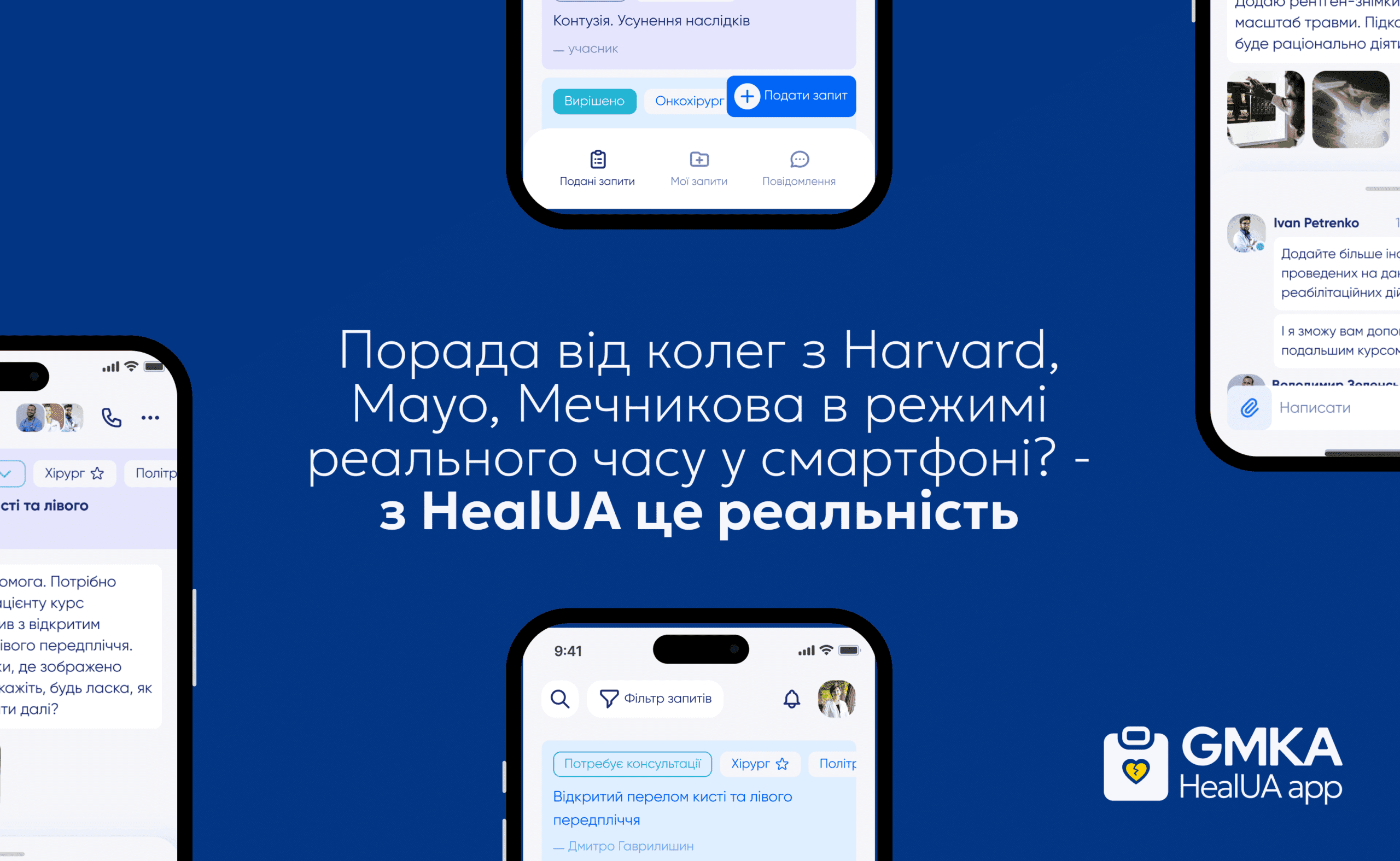 HealUA — перший безкоштовний мобільний застосунок, за допомогою якого українські лікарі можуть отримати консультацію від колег іншої спеціальності щодо діагностики та лікування пацієнтів.