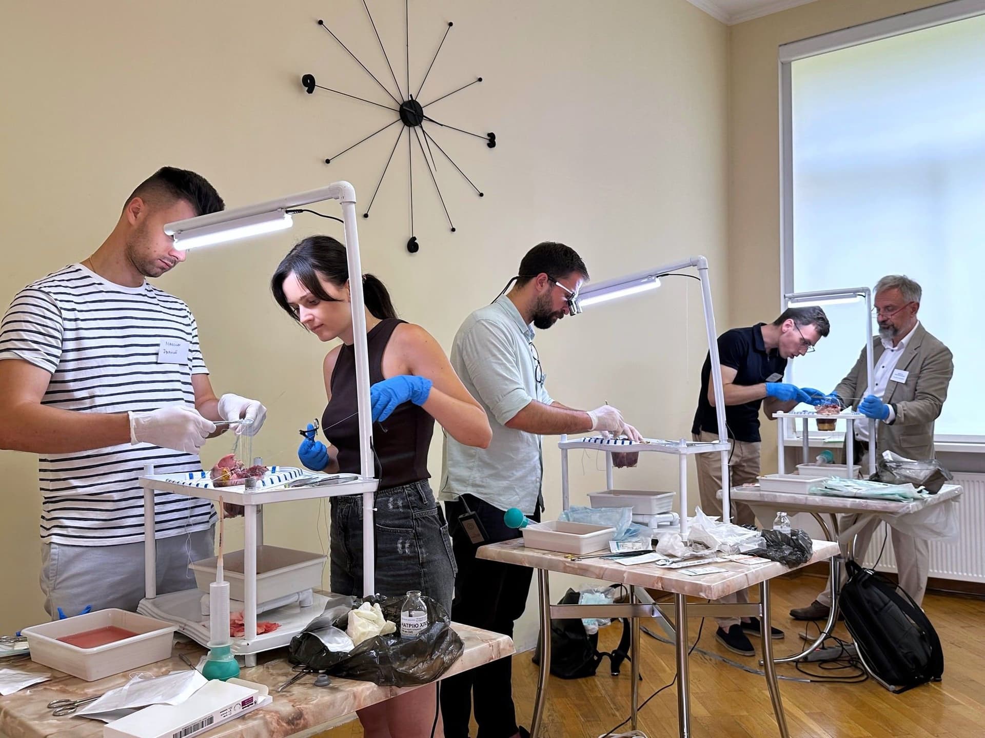 Крім цього, 20 кардіохірургів з всієї України взяли участь у майстер-класі, в рамках якого під керівництвом Сергія Мельничука відпрацювали практичні навички з імплантації неохорд, триангулярної резекції та імплантації опорного кільця.